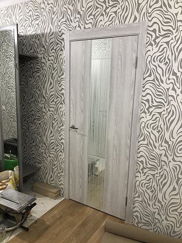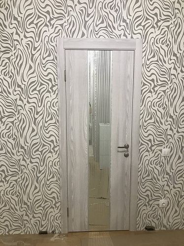 Дверь ПО EXZ 6E Клен айс стекло зеркало с рисунком из Экошпона COVERFLEX (Двери Нева) в Сортавале с установкой и доставкой